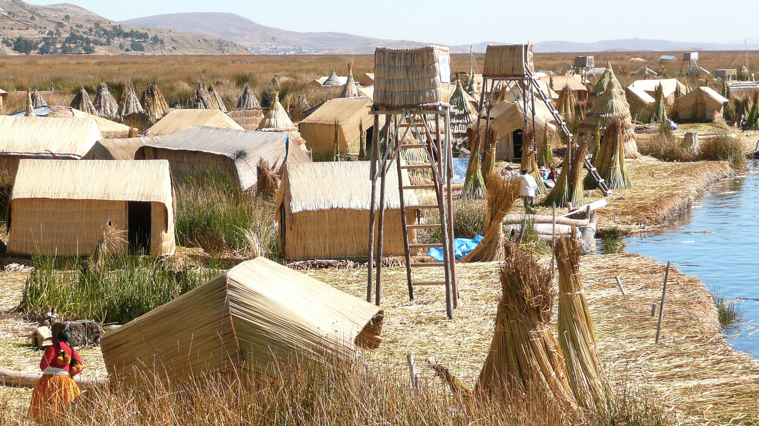 30 minutes de trajet et nous accostons les fameuses îles flottantes, Los Uros. Ce sont des îlots faits par les hommes, dont le sol est constitué de feuilles de roseaux posées en amas sur de la terre spéciale, très légère, qui flotte. Quelques habitations par île, pas d’électricité, mais une école. En effet, la vie est encore présente sur ces îles, qui vivent du tourisme, très développé, comme le montre les nombreux bateaux de touristes que l’on croise. 1h de visite plus tard, nous reprenons notre embarcation afin de rejoindre l’île d’Amantani, pour y passer la journée et la nuit.