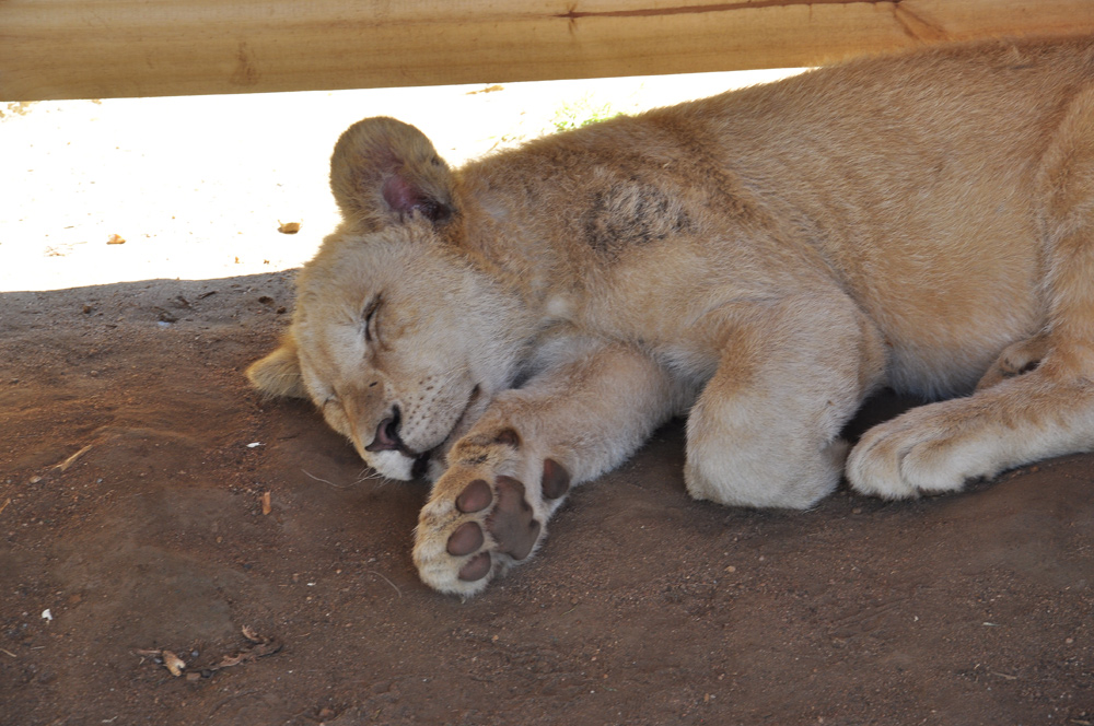Notre avion décolle à 19h, ce qui nous laisse pas mal de temps devant nous car nous arrivons dans la région de Johannesburg vers midi. Nous avons la possibilité de faire un tour (très rapide) dans le centre ville ou même à Prétoria, qui se trouve à environ 50 km. Mais nous préférons rester dans la thématique de notre séjour en choisissant de faire un tour dans le Lion Parc, une toute petite réserve où il est possible de voir des lions blancs et même de rentrer dans un enclos avec des lionceaux âgés de six mois, qu’il est possible de caresser. Malgré ce privilège, cette petite attraction touristique nous paraît tout de même fade après notre safari en pleine savane.